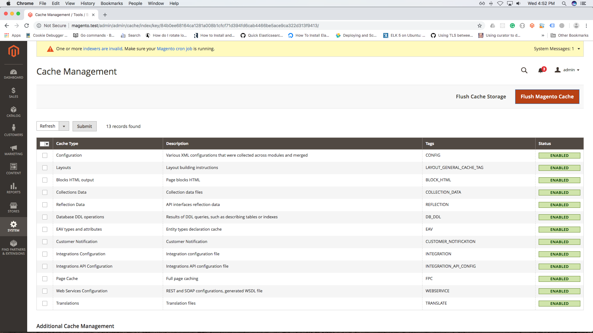 Click on the Orange Button, called ‘Flush Magento Cache’.