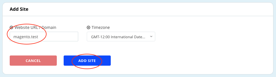 Now, add your Magento site name, and click on ADD SITE.