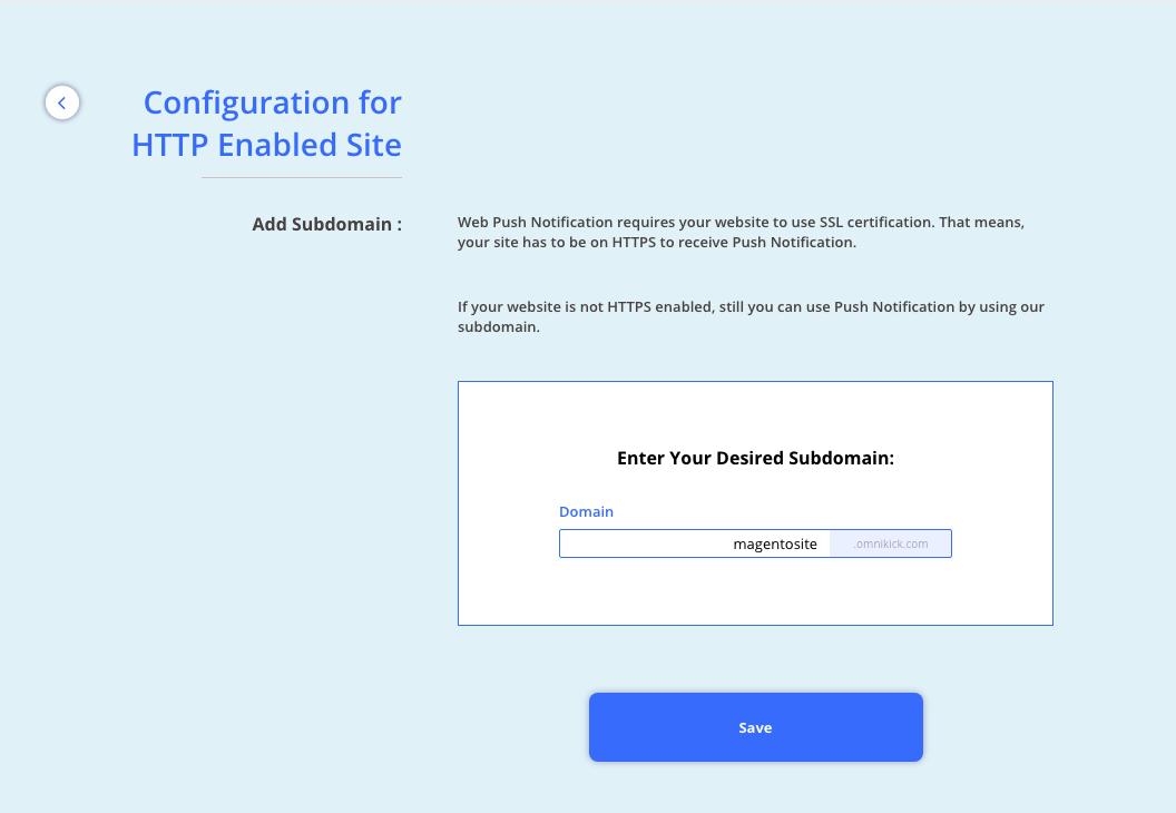 You are going to add your Magento store’s domain name to send web push.