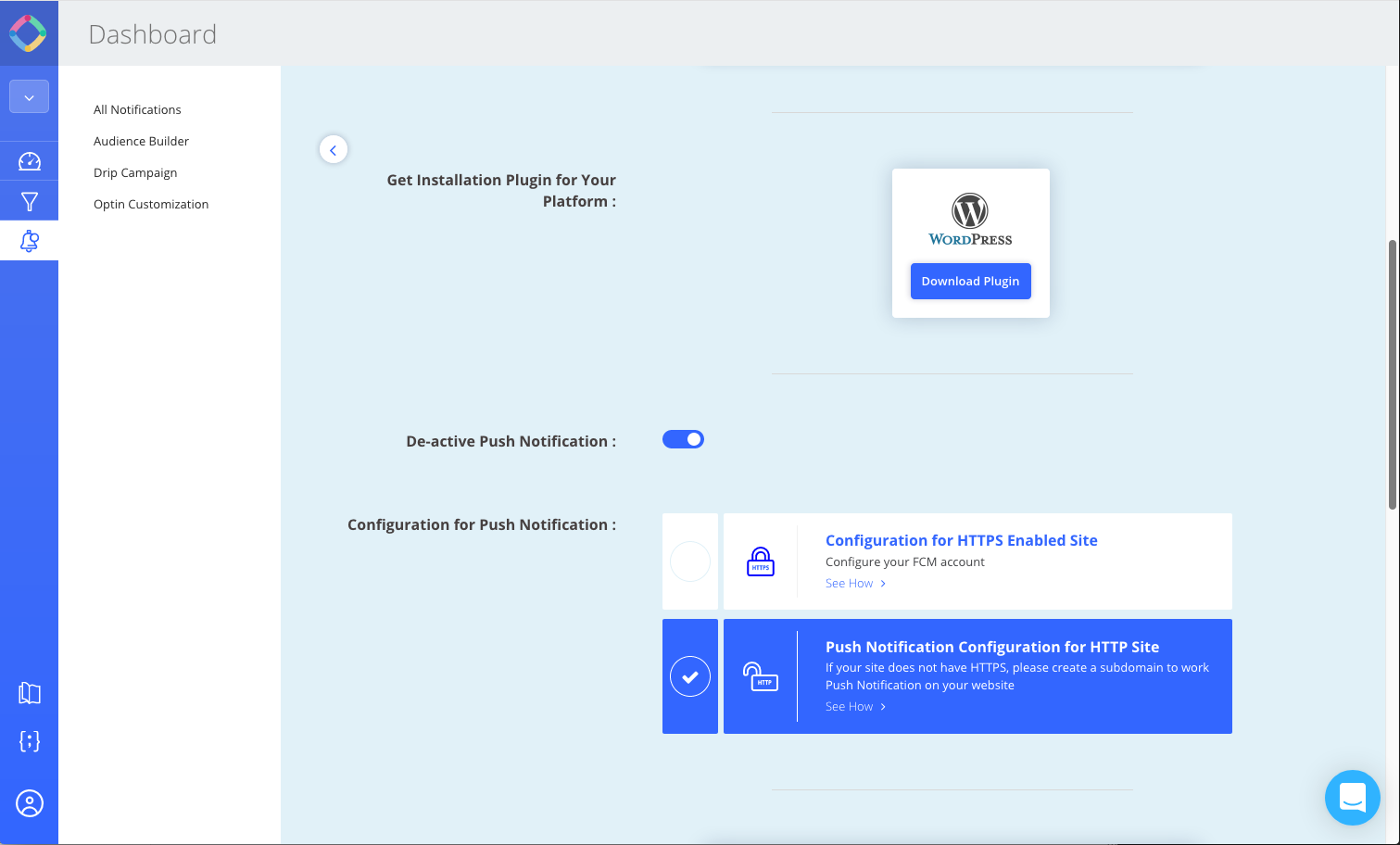 Step Two: Set Up Push Notifications WordPress For HTTP