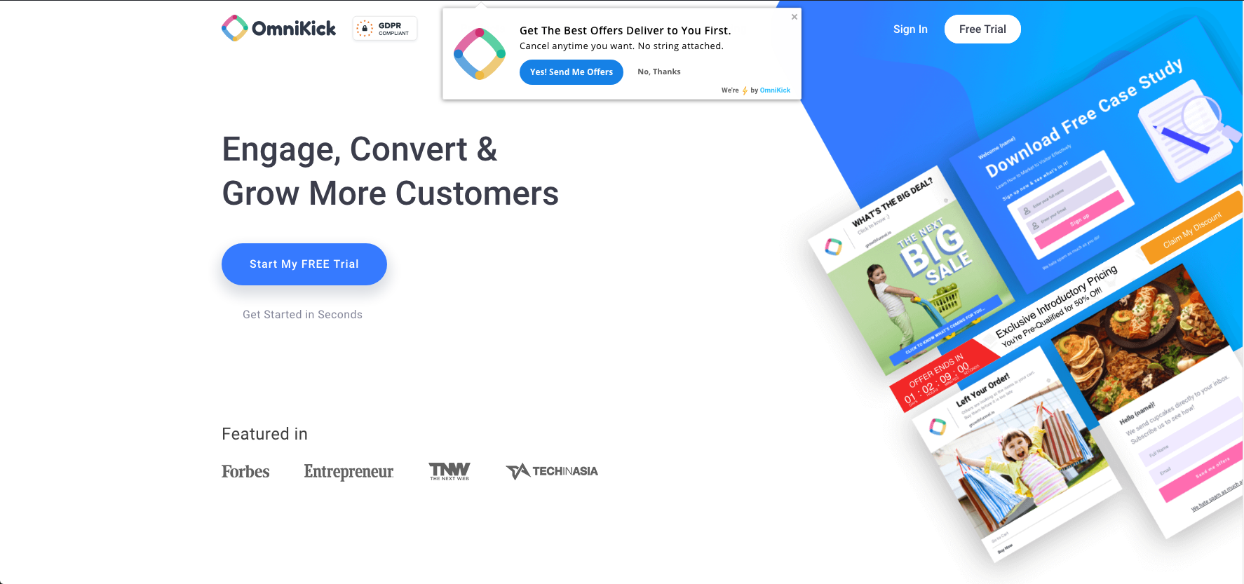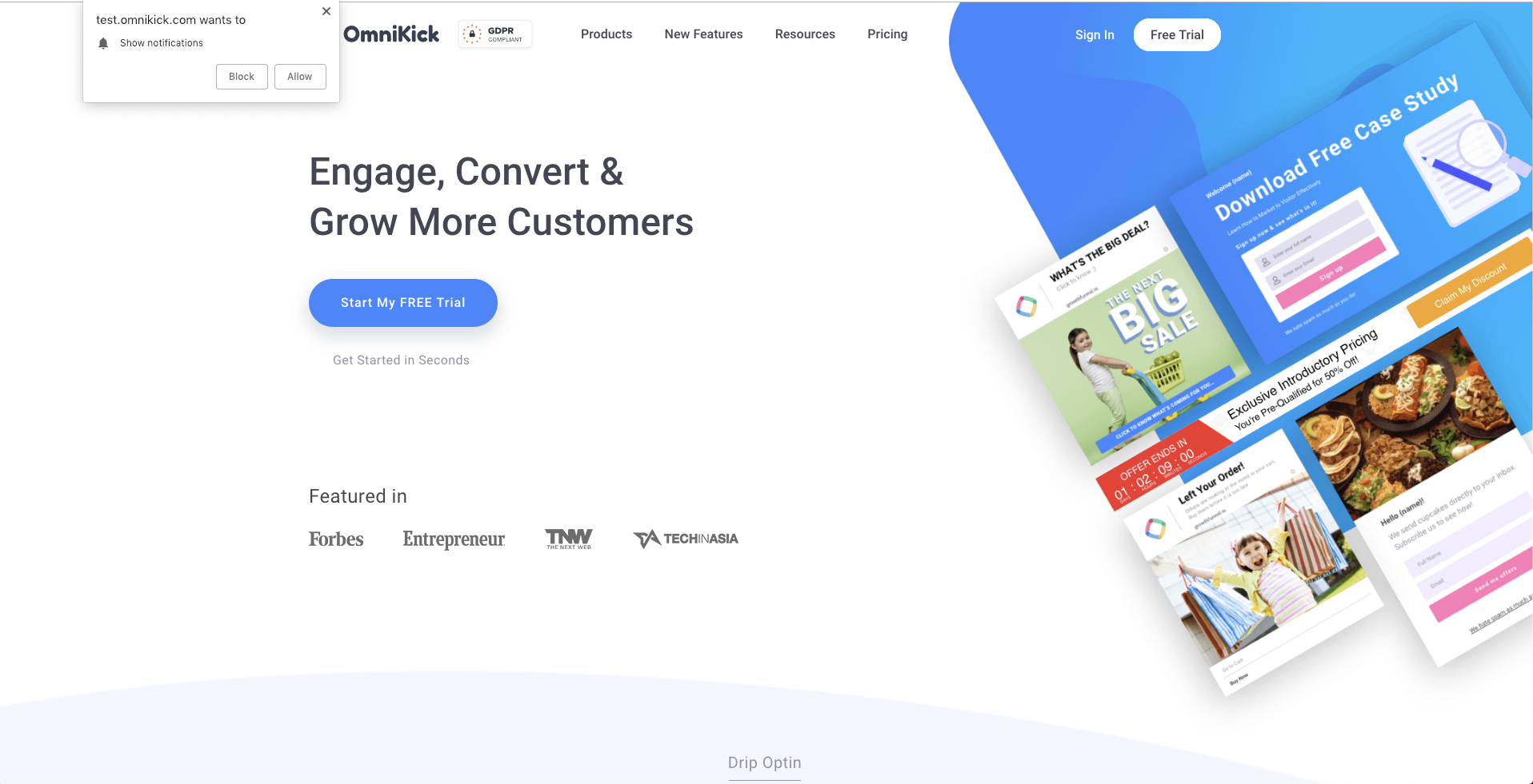OmniKick allows you to send web push notifications to any desktop and smartphones via Google Chrome, FireFox, and Safari.