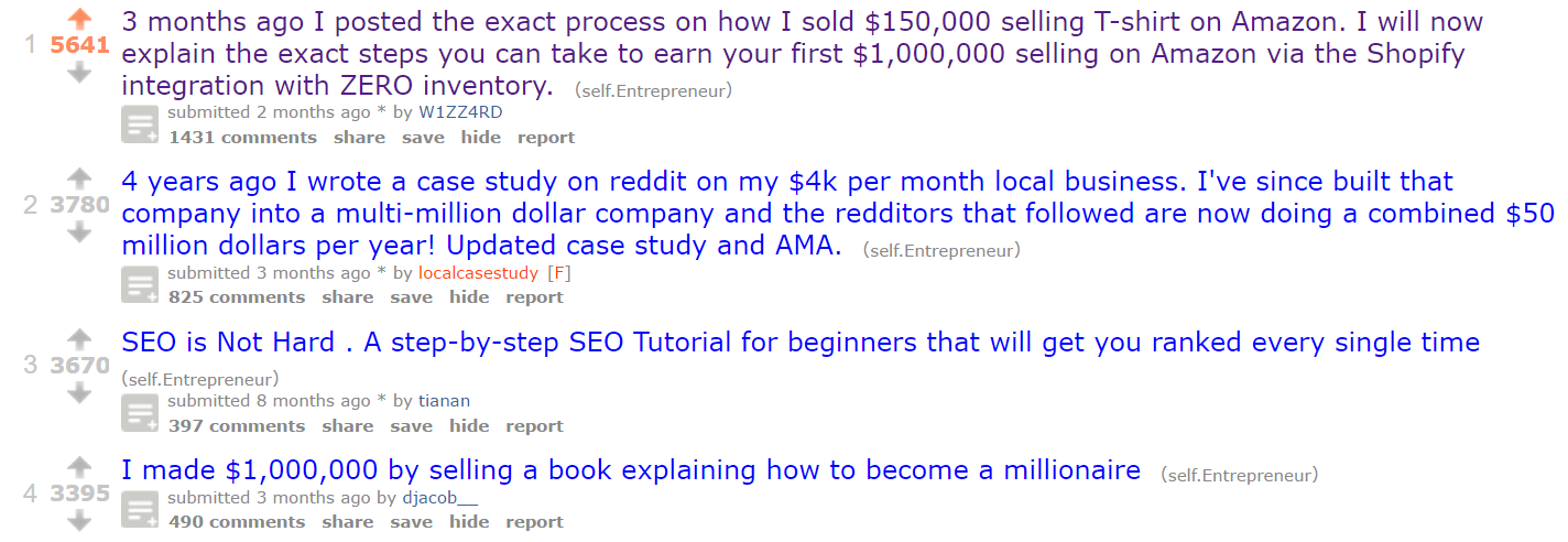People visit the Entrepreneur Subreddit to read original content about entrepreneurship.