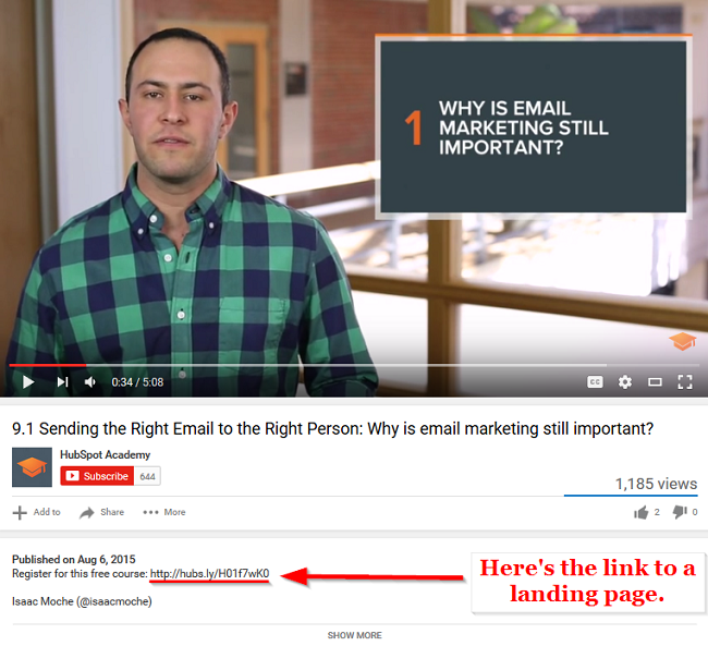 As you can see in the above image, that’s the link HubSpot uses to collect leads from its YouTube videos.