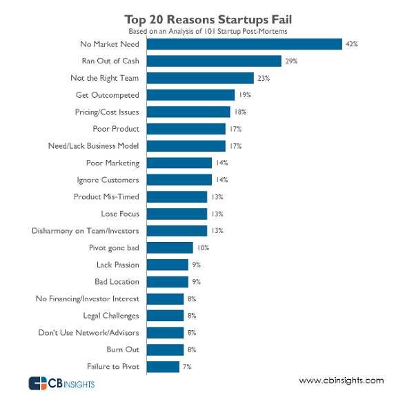 According to a survey by CB Insights, there are 20 reasons why most startups fail. The survey showed that 14% of startups fail because of poor marketing.