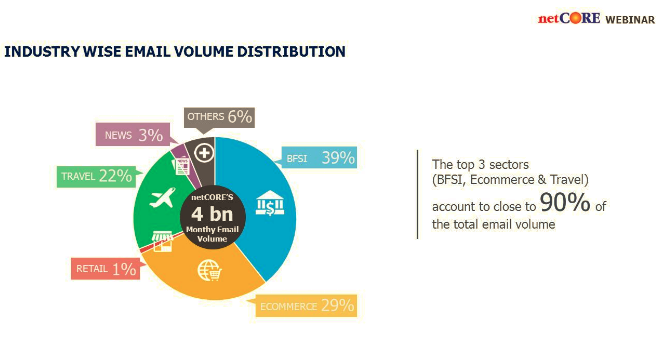 Almost 29% of total email sent from the eCommerce industry. The largest sector here is the banking and financial industries (39%).