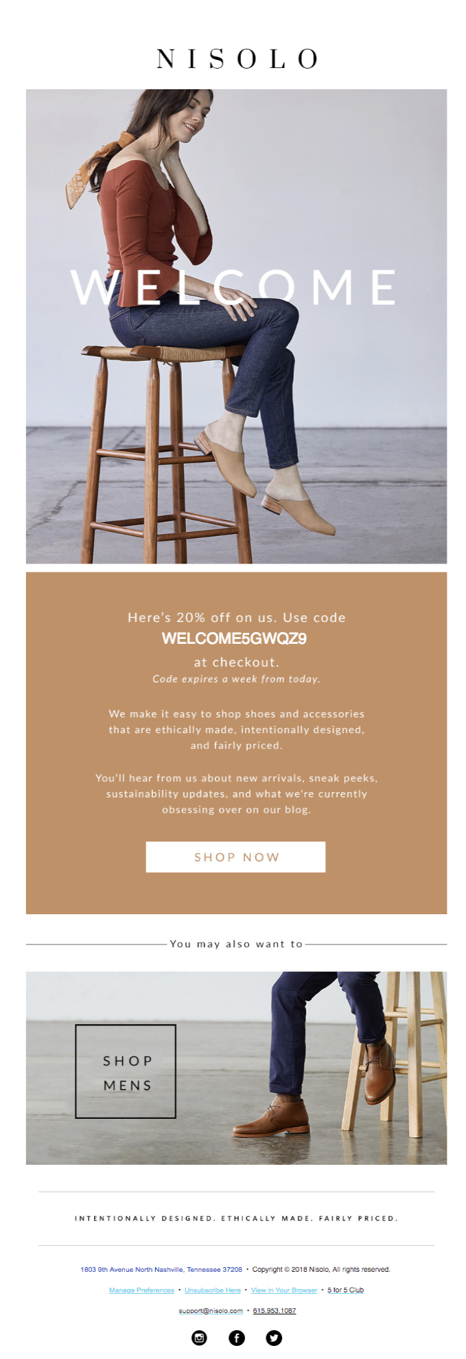 It’s beautiful what Nisolo did achieve with this Welcome email. They are a fashion brand. This mail is designed for new customers. A minimalistic design makes it more watchable which increases the chance of its success.