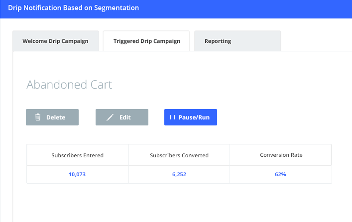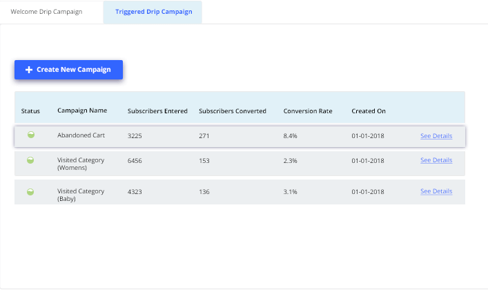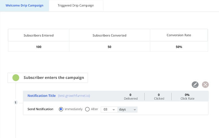 Setup a welcome drip campaign to send series of automated Push Notification to engage your new subscribers.