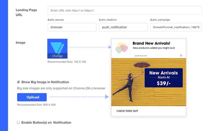 Get even more CTR and engagement by adding an image to your web push notification. Your subscriber will know about your product in a glimpse.