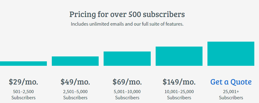 You spend $19 per month for up to 500 users and unlimited emails! In case you exceed, following is the pricing table with details-