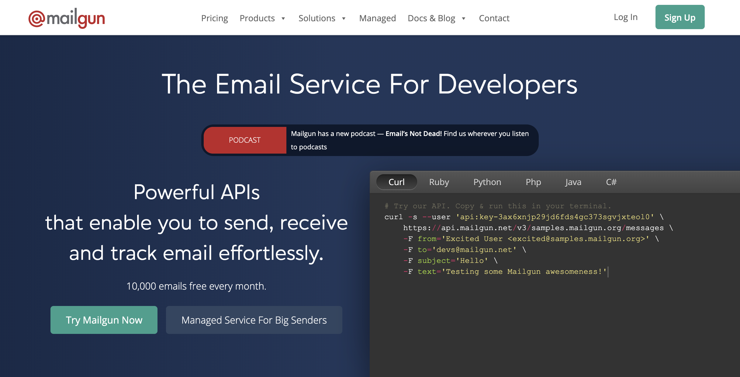 Mailgun is the leading API-based email delivery service trusted by over 150,000 companies to send, receive, and track email easily from their websites and apps. It is one of the most popular email marketing solution trusted and used worldwide by marketers and almost all size of business.