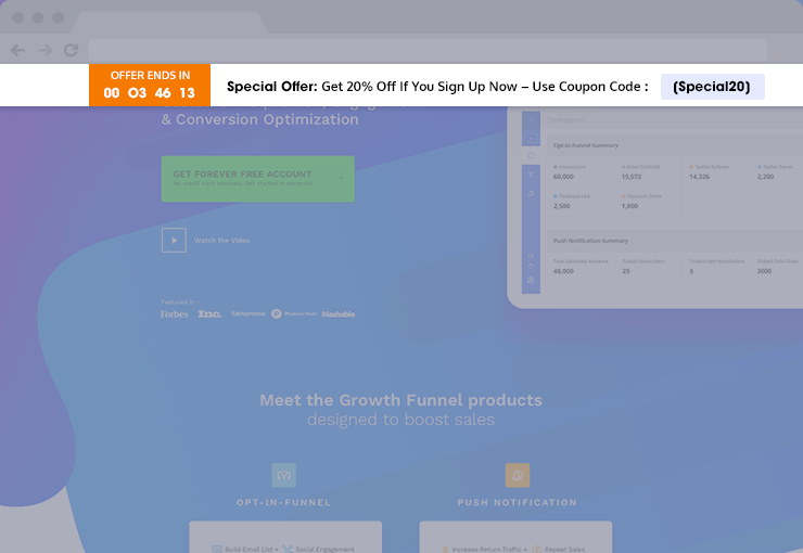 Convert abandoning visitors into leads and customers by displaying an abandon intent popup with special offers or gift.