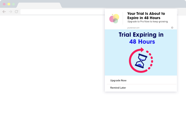 Send Push Notification about discount offers, new features, free training/webinar, trial expiration to engage, re-engage & activate your customers.