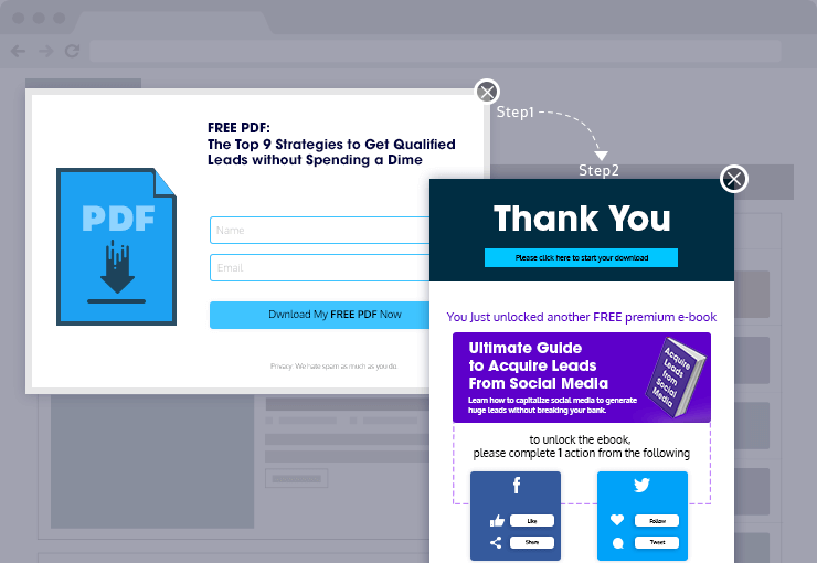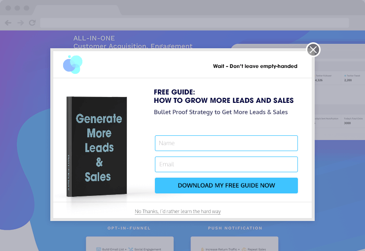 Generate more leads & sales by giving a free micro tool like ebook, reports, case study & other types of content bribe. With Drip Optin popups, fullscreen Overlay or slider with just a few clicks.