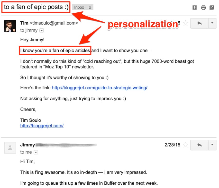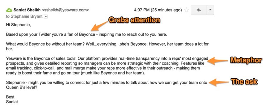 For example, the Yesware team shared an email outreach template that worked for them.