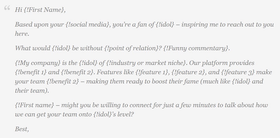 By using the above email template, you’ll be messaging everyone using their favorite artists or celebrities as a way of starting conversations with them.