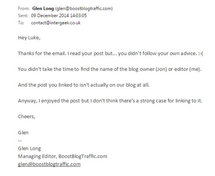 It’s not hard to tell that it was a templated email message. Any smart person who receives lots of emails each day (as most of your recipients do), would know that it’s not natural.