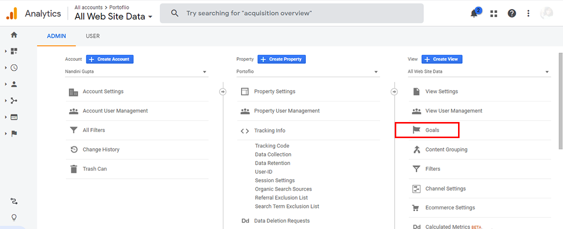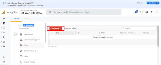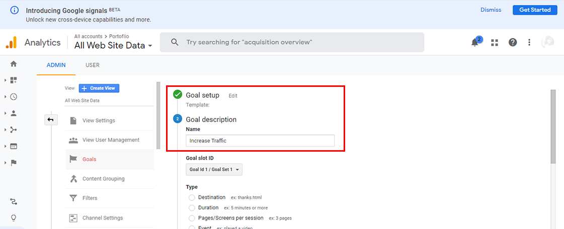 - Go to ‘goal setup’ and add a template, preferably the ‘custom template.’