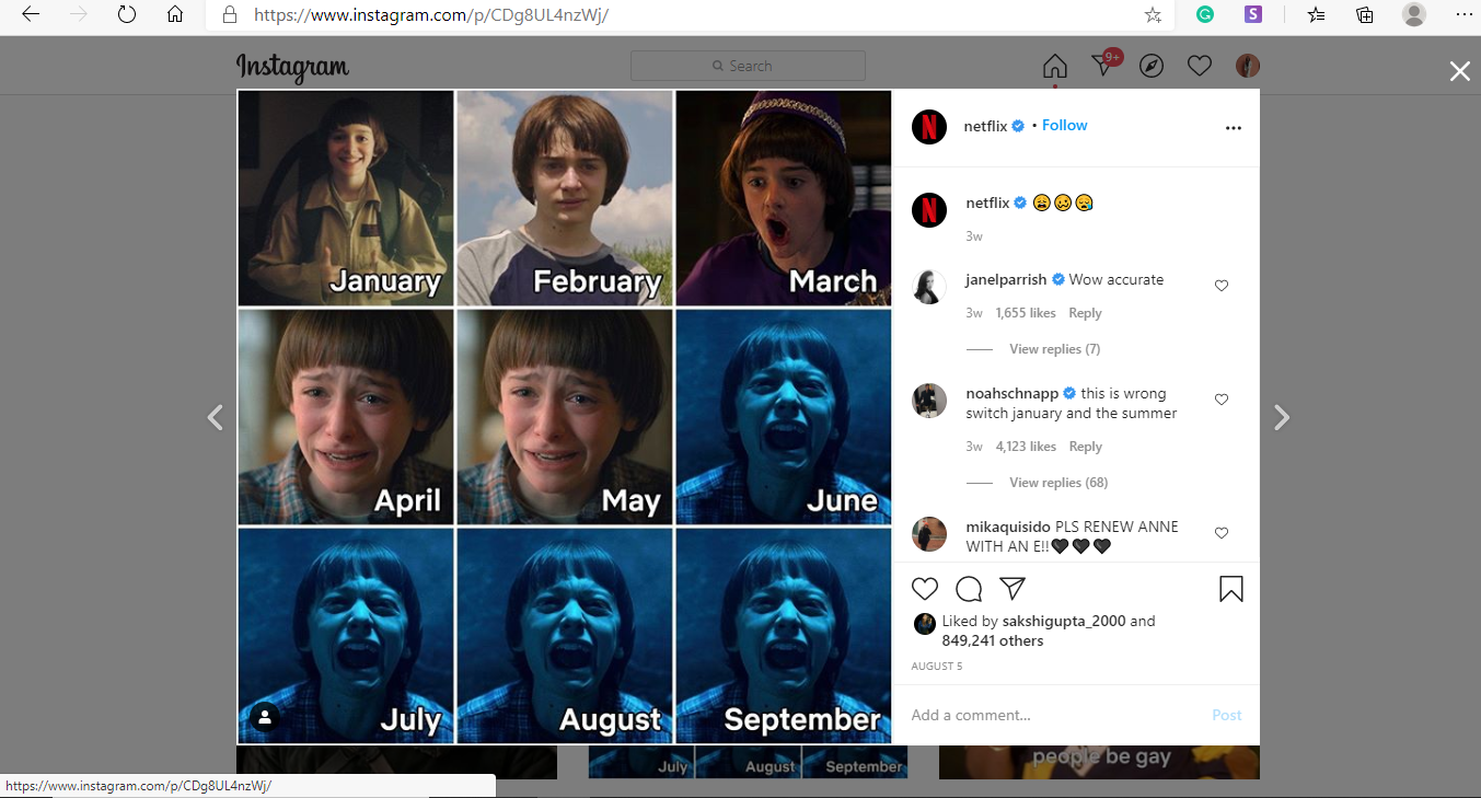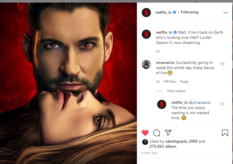 Netflix is doing a great job of replying to comments on their Instagram posts!