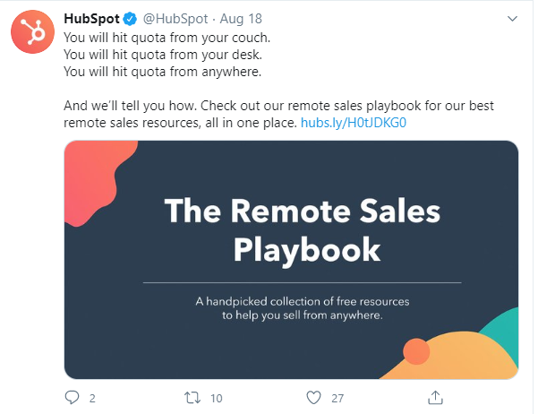 Hubspot promoting its playbook on Twitter is an excellent example of a free resource.