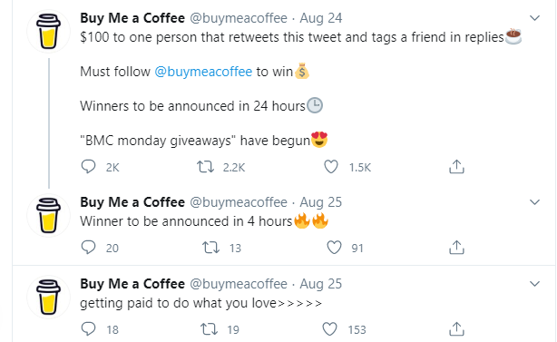 This giveaway by Buy me a Coffee is a Monday ritual, and the audience loves it!