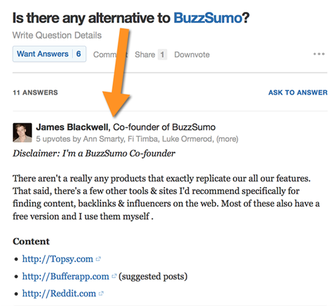 BuzzSumo co-founder answers questions relevant to his brand on Quora to engage with the audience.